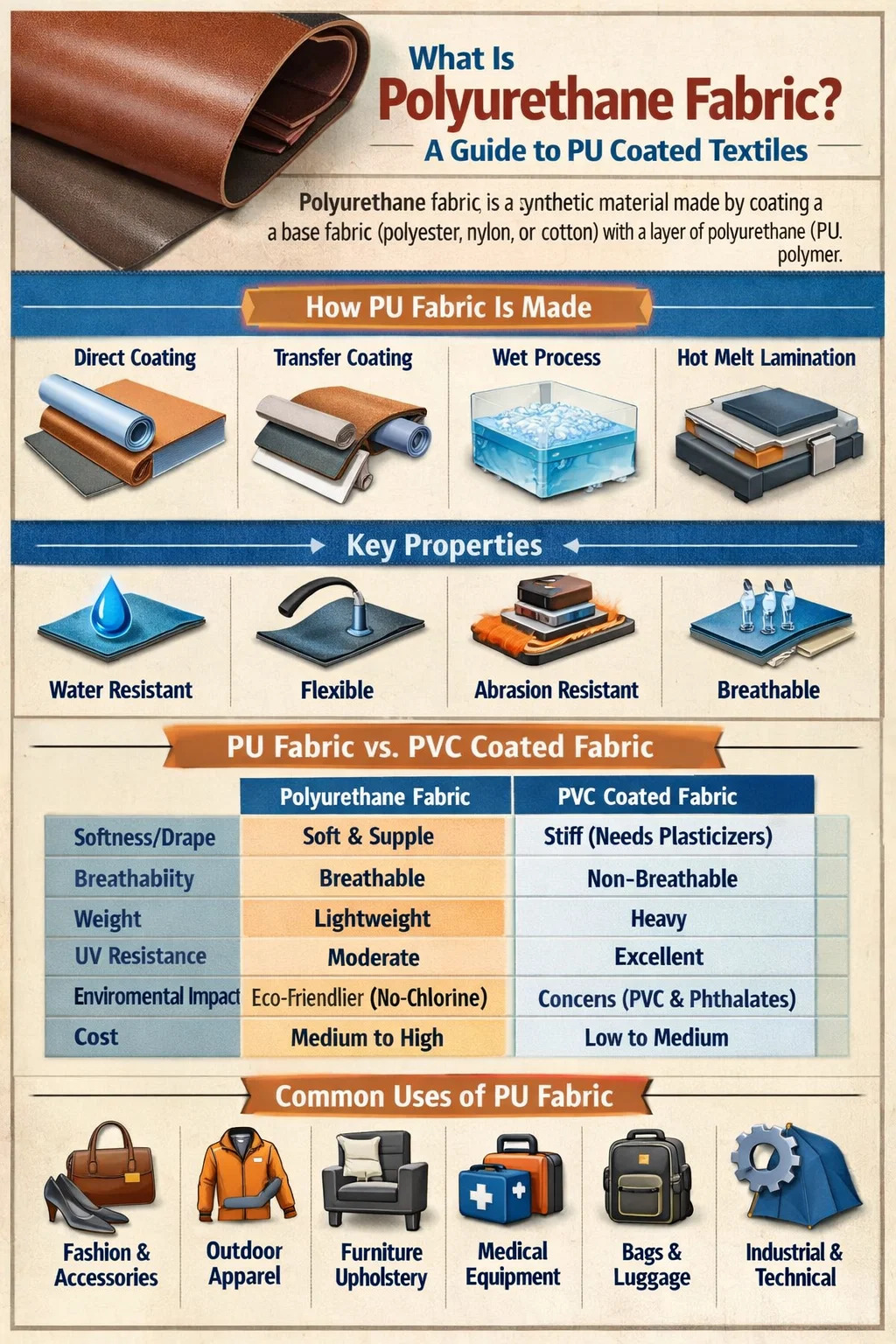 Fabraic Polúireatán vs Fabraicí Brataithe PVC — Comparáid Mhionsonraithe