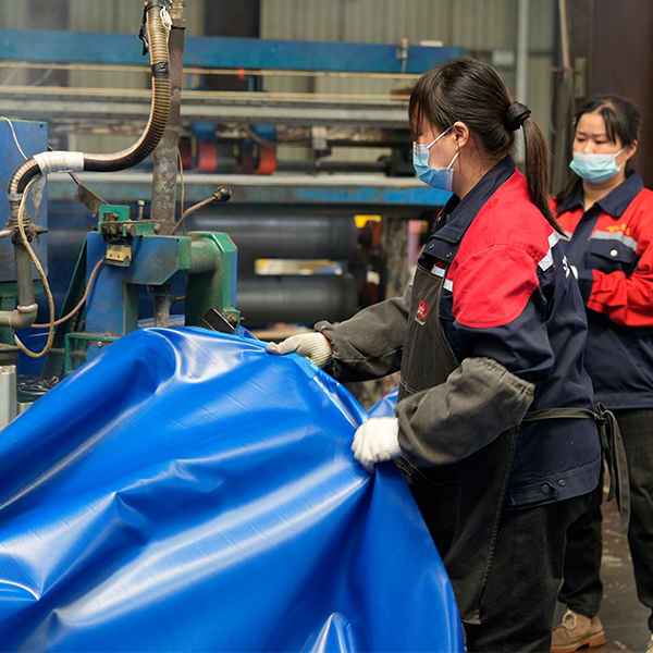 Tarpaulin scian-scríofa Factory, Jiangsu Sulong Eco-Technologies Co., Ltd. was founded in 2007 (referred to as Sulong Environmental Protection), located in Funing Filter Media Industrial Park, Jiangsu Province, with registered capital of 108 million yuan, covering an area of 50 acres, with a construction area of 30,000 square meters. Our products include PVC, PE polymer airtight fabrics, coated fabrics, waterproofing membranes and products; mud and chemical grouting equipment, mining and tunnel ventilation systems, etc. We attach great importance to scientific and technological innovation. Our company attaches great importance to scientific and technological innovation, and has established cooperation with Sichuan University and Yancheng University of Technology in the fields of “production, learning and research”. As of 2018, we have obtained 5 nationally authorized invention patents and 27 utility model patents, and declared 20 invention patents for approval. The company has spent many years to independently research and develop the “Intelligent Wind Tube Coating Fabric One-shot Unit”, which is a one-shot PVC polyester fiber composite airtight fabric production line with double-mold casting method, which has been certified by the Science and Technology Department of Jiangsu Province and the Economy and Information Technology Commission of Jiangsu Province, and awarded the certificate of Jiangsu Province's “First Set Equipment Award”. The unit has been certified by Jiangsu Provincial Science and Technology Department and Jiangsu Provincial Economic and Information Committee and awarded the certificate of “First Equipment Award” of Jiangsu Province.